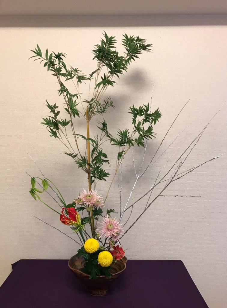 お写真は27日に最後のお稽古のお正月花、生徒さんの作品です
